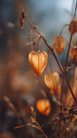 Physalis alkekengi with vibrant orange and red calyces creating autumn decor
