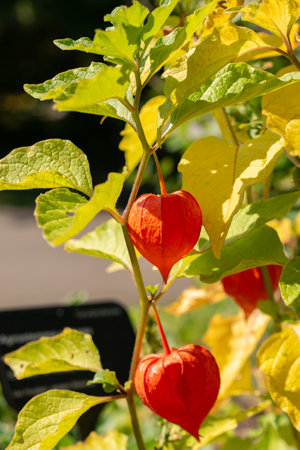 Zurich, Switzerland, September 21, 2024 Physalis Alkekengi or bladder cherry plant at the botanical garden