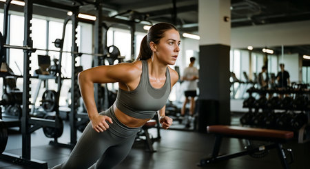 Beautiful girl wearing fashion sportswear doing exercise at gym.