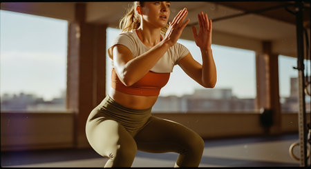 Young sportswoman with prosthesis doing exercise while working out indoors
