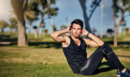 The body achieves what the mind believes. Shot of a young man in gymwear working out in a park.