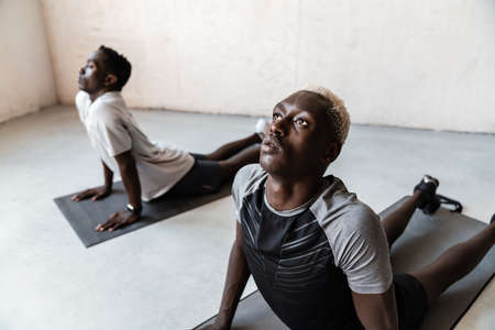 African american man exercising on mat at home. Lifestyle, wellbeing, exercise, fitness and domestic life, unaltered.