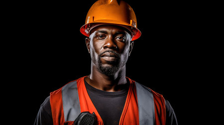 Portrait of an African-American construction worker on a black background.