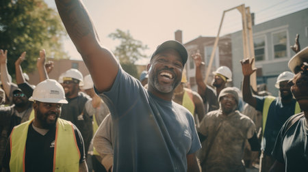 Joyful construction worker enjoys his day at work showing a spirit of teamwork and commitment.