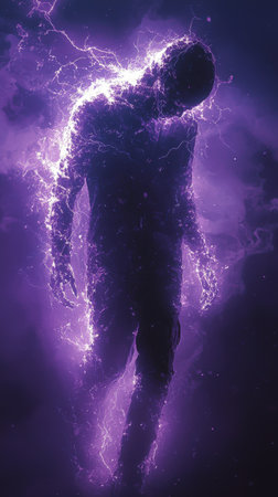 Silhouette of a man immersed in purple electric energy, dramatic effect
