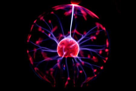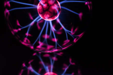 Close up - plasma ball with many energy rays inside. Electricity, education, science, futuristic, technology and physics concept