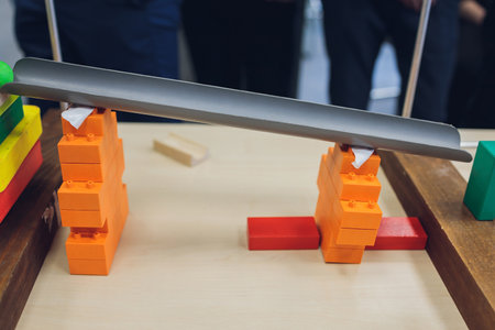 A verrical closeup shot of toy block figurines learning geometry in a class