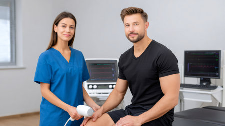 Patient receiving treatment from a physiotherapist in a modern clinic