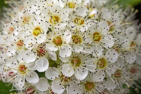 Macro of inflorescence of purple leaved Physocarpus opulifolius in June