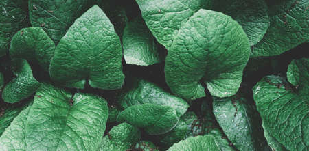 Green fresh tropical big leaves background. Organic plant texture
