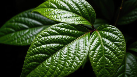 This close-up showcases a collection of vivid green leaves, exhibiting intricate patterns and textures. The composition highlights the natural beauty of the foliage, emphasizing the play of light on the surfaces. This image is suitable for a variety of uses, including editorial and design projects.
