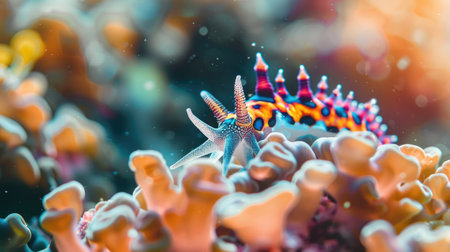 Explore the beauty of a vibrant sea creature showcasing striking textures and colors, gracefully moving through its underwater habitat in a serene environment.