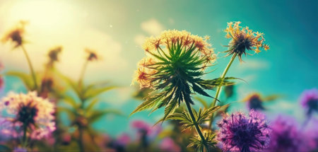 A branch of cannabis in the natural autumn sunlight. Selective focus