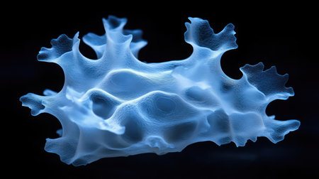 Intricate world of living cells in this closeup, showcasing glowing organic structures on a stunning blue background, revealing lives microscopic beauty