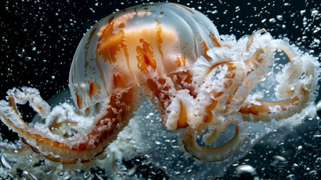 close-up of jellyfishs delicate tentacles and twirling, created with generative ai
