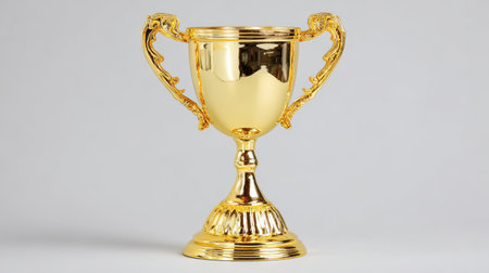 Shiny Gold Trophy on Neutral Background Celebrating Achievement and Success in Sports or Awards with Detailed Craftsmanship and Elegant Design Features