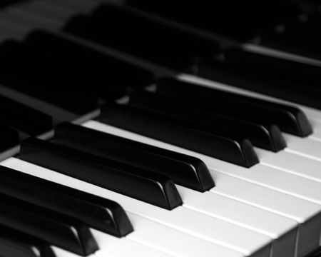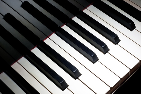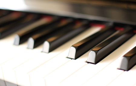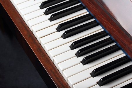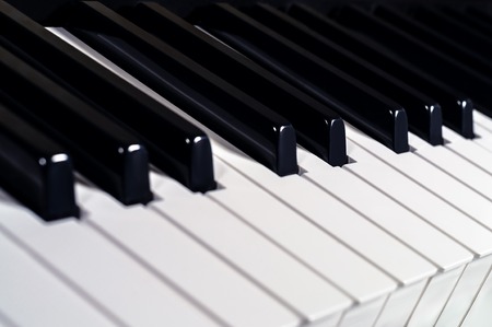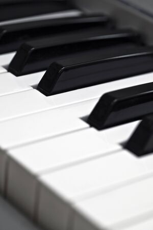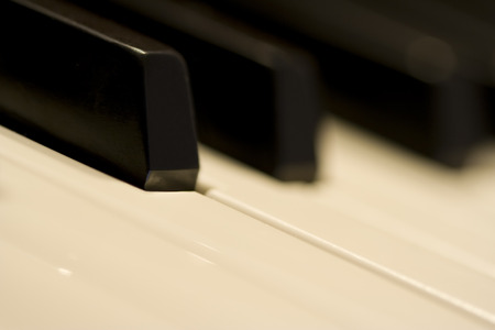 Close up of a piano keyboard with selective focus and shallow depth of field