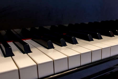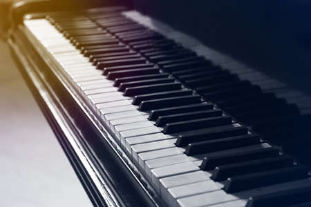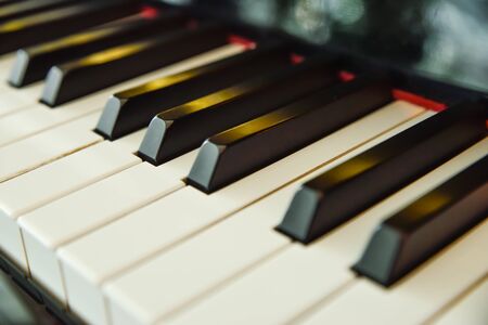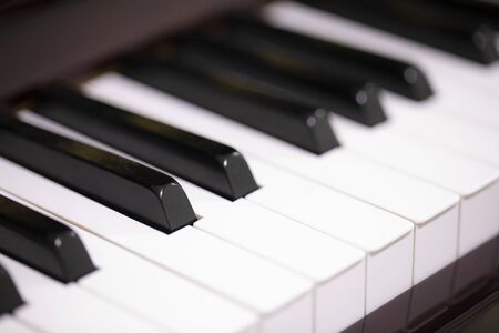 Top view of instrument musical tool. Close up to the piano keyboard background with selective focus. Classical music with black and white key.