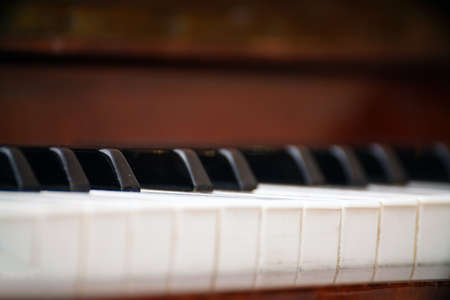 Close-up or macro image of piano keys by selective focus technique can be seen the details of classic instruments used in both Jazz and pop music which background and foreground are blurred.