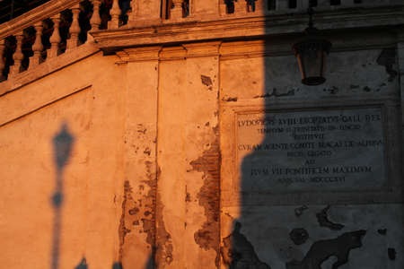 Rome, Italy: The Capitoline Hill, Latin: Collis Capitolinus, Italian: Campidoglio, in the sunrise. Capitolium square, Italian: Piazza del Campidoglio