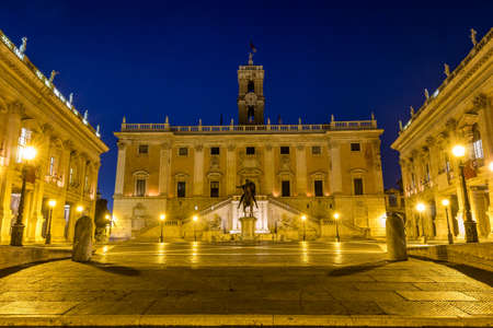 Capitoline hill with Palazzo Senatorio at twilight, Rome, Italy