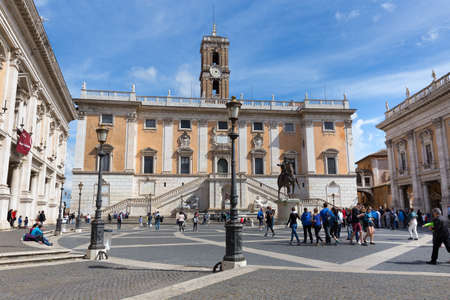 Rome. Italy - March 22, 2017: Palace of the Senators in Piazza del Campidoglio (Capitoline Square) on the Capitoline Hill, Rome, Italy.