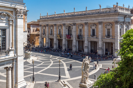 Rome, Italy, May 20, 2016: Tourists visit the beautiful Capitoline Square in the very center of Rome