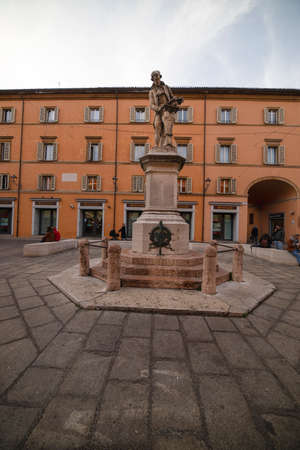 Piazza Savonarola and monumet to Savonarola in Ferrara, Emilia-Romagna, Italy. Ferrara is capital of the Province of Ferrara
