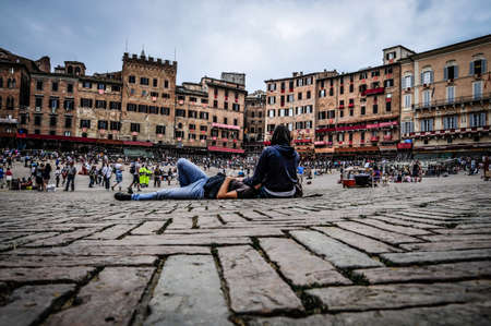 SIENA, ITALY MAY 25, 2017: Piazza del Campo.The historic centre of Siena has been declared by UNESCO a World Heritage Site. Beautiful historic buildings and palaces.