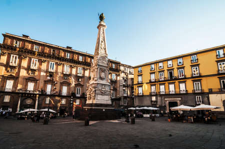NAPLES - SEPTEMBER 21 view of famous San Domenico Maggiore square and the big monument at the center on september 21, 2012 in Naples, Italy