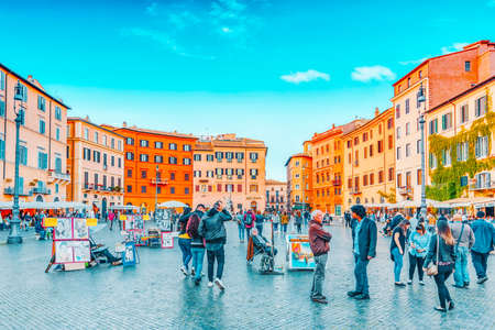 ROME, ITALY - MAY 09, 2017: Piazza Navona is a square in Rome, Italy. It is built on the site of the Stadium of Domitian, built in 1st century AD, and follows the form of the open space of the stadium. Italy.