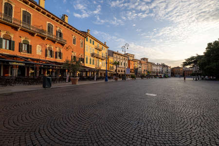 VERONA, ITALY 10 SEPTEMBER 2020: Piazza Bra in Verona in Italy at sunset