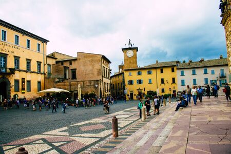 Italy, Verona, June 01, 2019: View of the city square with ancient European architecture with street cafes with many people.