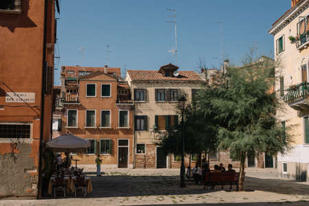 VENICE, ITALY - August 27, 2021: View of people in Venice square in Italy.