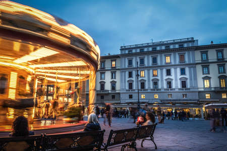 FLORENCE ITALY, JUNE 03 2018: night scene of Florence or Firenze city Tuscany Italy - piazza della Repubblica - long exposure photography. Editorial use.