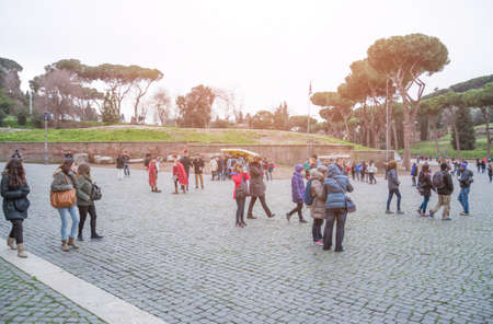 ROME, ITALY - JANUARY 1, 2019: tourists walking in street and enjoying the wonders of Rome