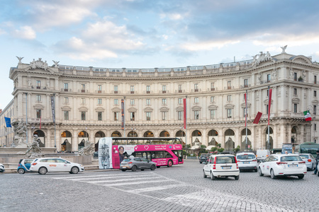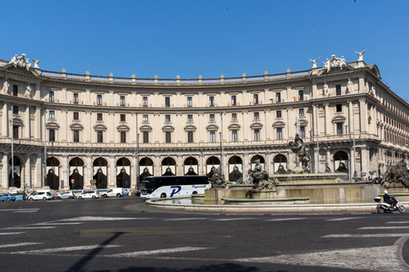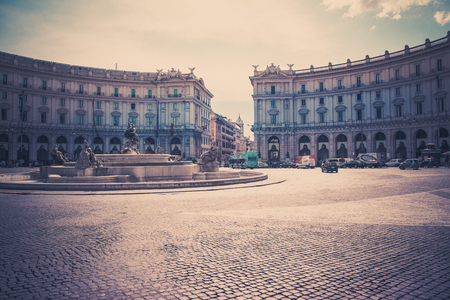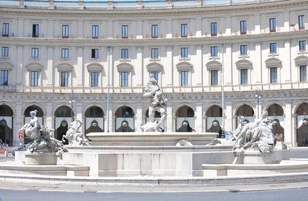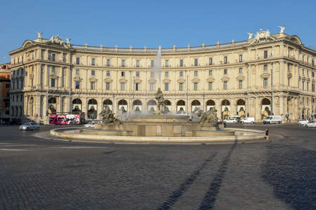 Rome, Italy - September 21, 2013: Piazza della Repubblica, Republic square and Fountain of the Naiads on bright clear morning