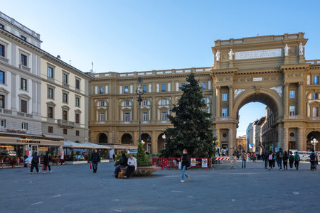 FLORENCE - DECEMBER 17, 2015. People sightseeing before christmas around Piazza della Repubblica in Florence, Italy.