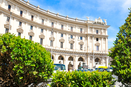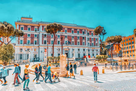 ROME, ITALY-MAY 08, 2017: Beautiful landscape urban and historical view of the Rome, street, people, tourists on it, urban life of the Eternal City. Ministry of the Interior.(Ministero dell'Interno)