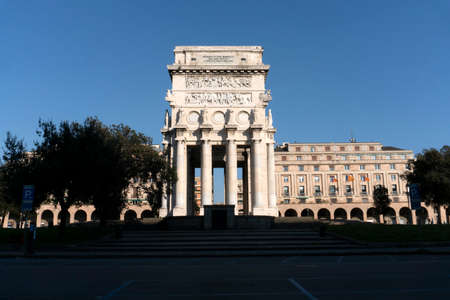 GENOA, ITALY - APRIL 5 2020 - Downtown streets are desert due to coronavirus covid19 quarentine people must stay home to avoid infection spreading