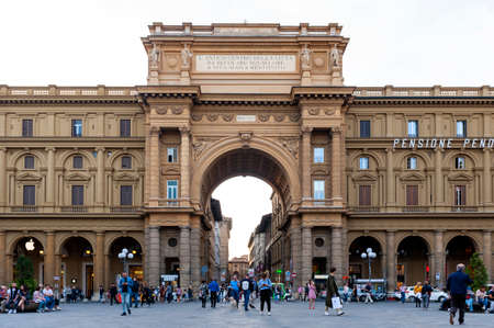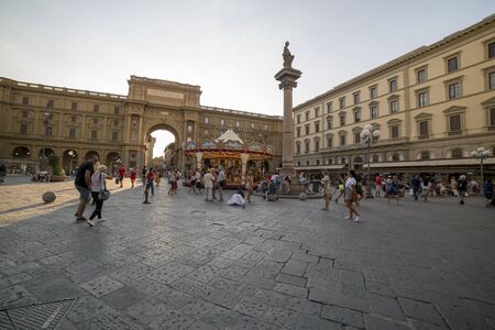 Florence, Italy - August 21, 2019: View of the Piazza Della Repubblica in the center of Florence in Italy