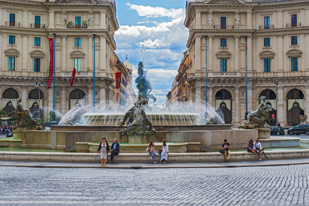 Rome, Italy - September 1, 2014: Tourists at the Fountain of the Naiads. Sculptures of Naiads by Mario Rutelli from Palermo, The naiads represented are the Nymph of the Lakes, the Nymph of the Rivers, the Nymph of the Oceans , and the Nymph of the Undergr