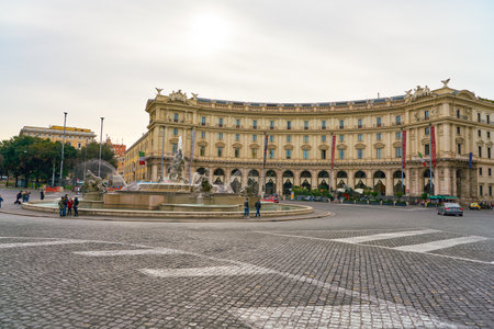 Rome, Italy - October 2019: The Fountain of the Naiads located at the centre of the Piazza della Repubblica on the Viminal Hill in Rome, Italy