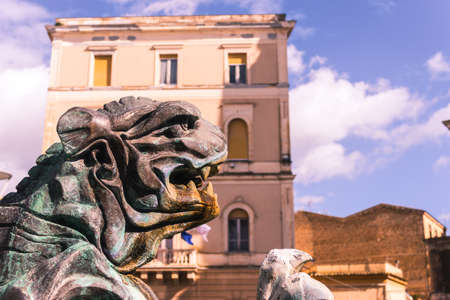 Piazza Garibaldi and the chamber of commerce in caltanissetta with blue sky and the statue at the center