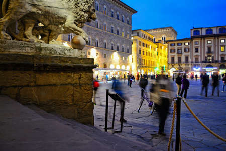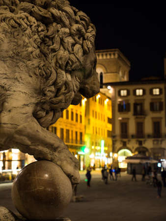 beautiful statue of lion at famous Loggia dei Lanzi in Florence, Italy