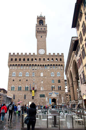 Florence, Italy - May 01, 2014: Palazzo Vecchio is the town hall of Florence. The palace was built in 1299 and since 1872 it has housed the office of the mayor of Florence. December 01, 2012 Florence, Italy