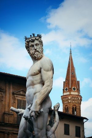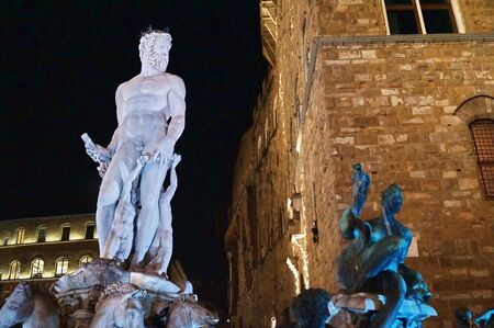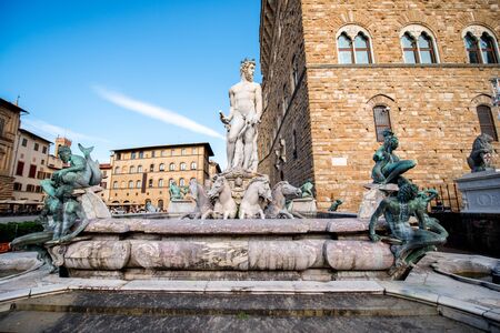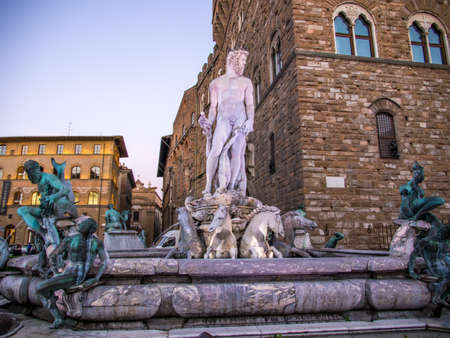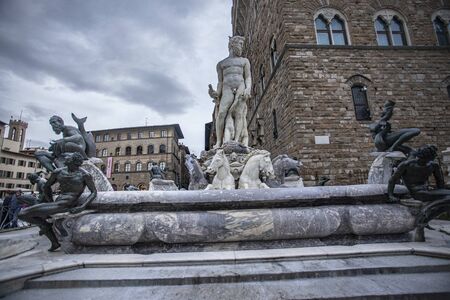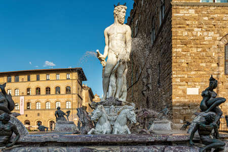 One of the most beautiful and interesting fountains dedicated to the lord of the seas, Neptune, can be seen on Signoria Square in Florence, Italy