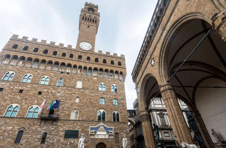 Palazzo Vecchio and Signoria square landmark in Florence, Tuscany, Italy.