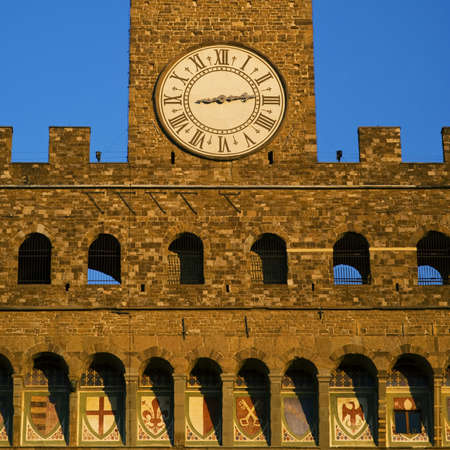 Florence, Italy: Palazzo Vecchio, the Tower at the sunset