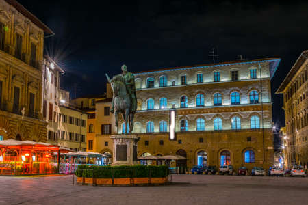 FLORENCE, ITALY, MARCH 15, 2016: night view of the Equestrian statue of Cosimo I de 'Medici on the Piazza della Signoria on Piazza della Signoria in Florence